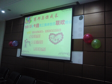 與此同時,佛山南海賽邦也在一樓培訓室舉行9月份生日會,生日會的場地于當天下午16點前早就布置好了,周圍沾滿氣球,現場氣氛熱烈。當月的壽星們同各部門人員聚齊在一起,發生日卡,收集員工生日祝福,壽星許愿,吹蠟燭,唱生日歌,切蛋糕。大家其樂融融,幸福縈繞其中,也增加了員工的歸宿感。